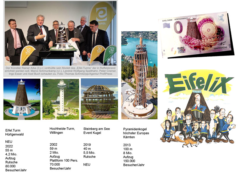 Turm-Attraktionen. Europas höchster Turm, der Pyramiden-Kogel ist doppelt